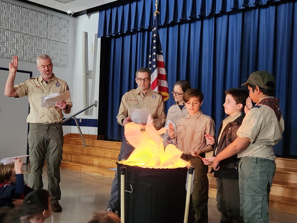 In March, held our annual Blue & Gold Banquet to celebrate the 116th birthday of Scouting and our Webelos passing on to Scouts BSA.